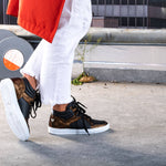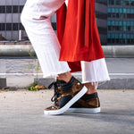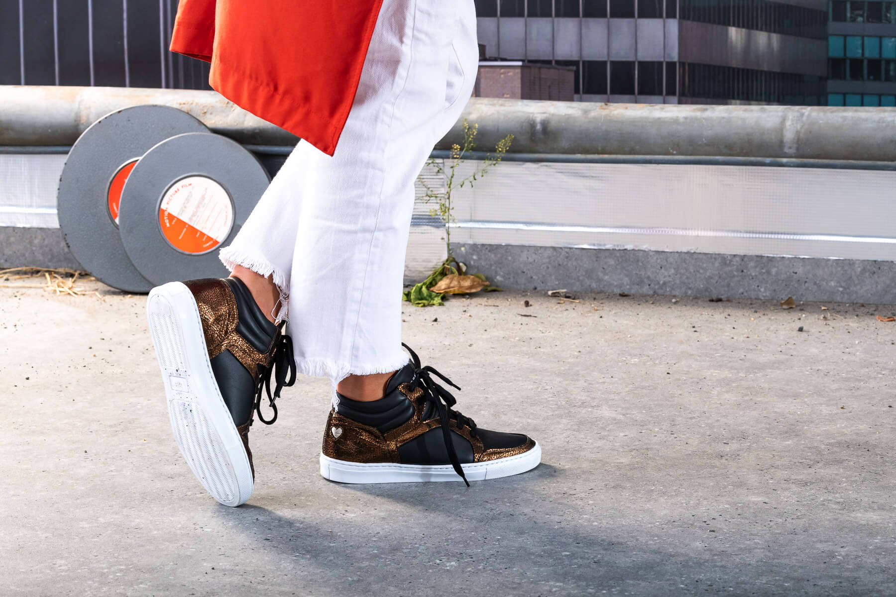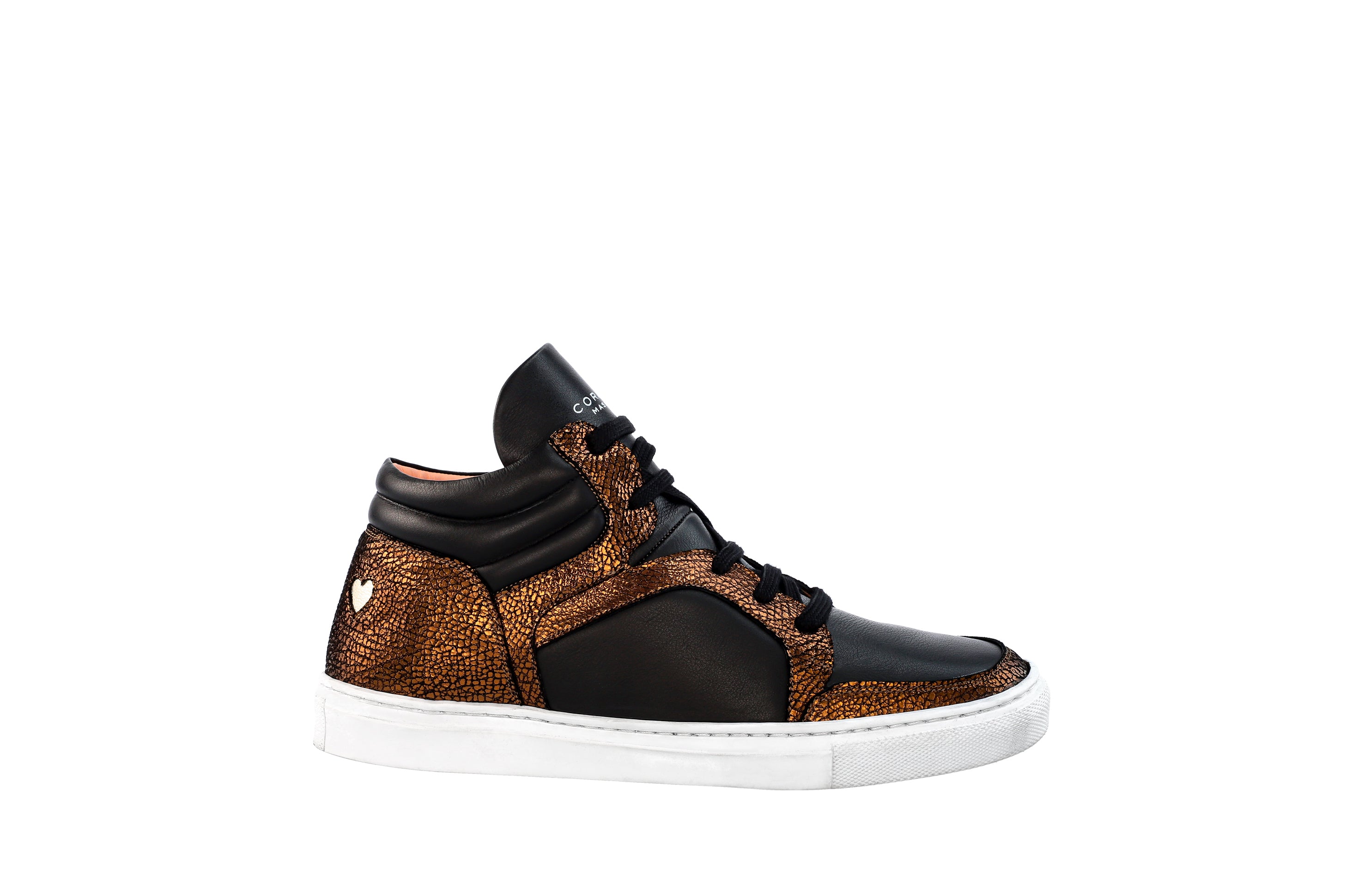 Basket montante en cuir noir et bronze idéale pour la rentrée. Notre modèle de sneacker Maria va vous séduire avec ses couleurs plus hivernales. Véritable it shoes, vous les avez adoré cet été, les revoilà pour l'automne.