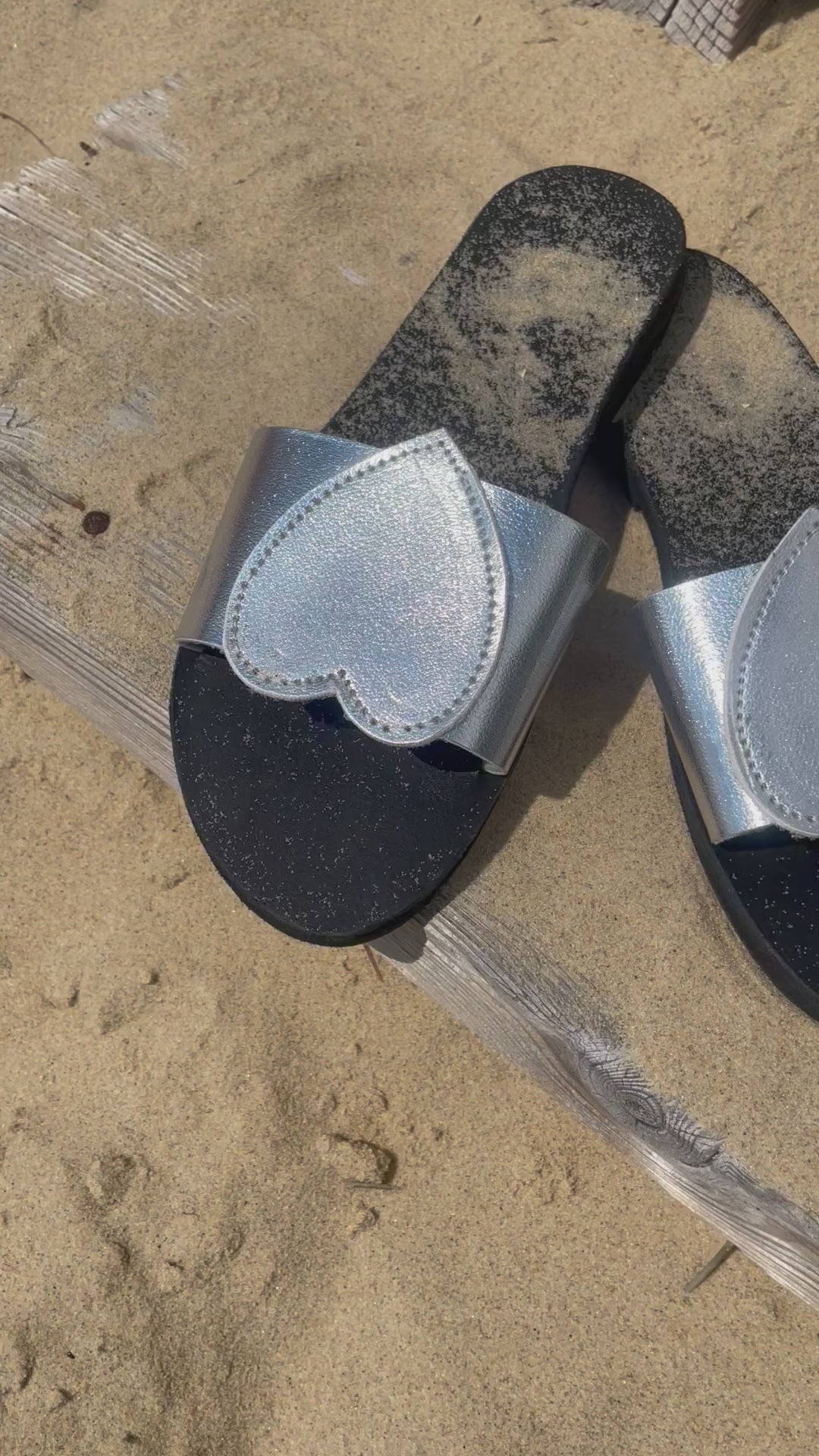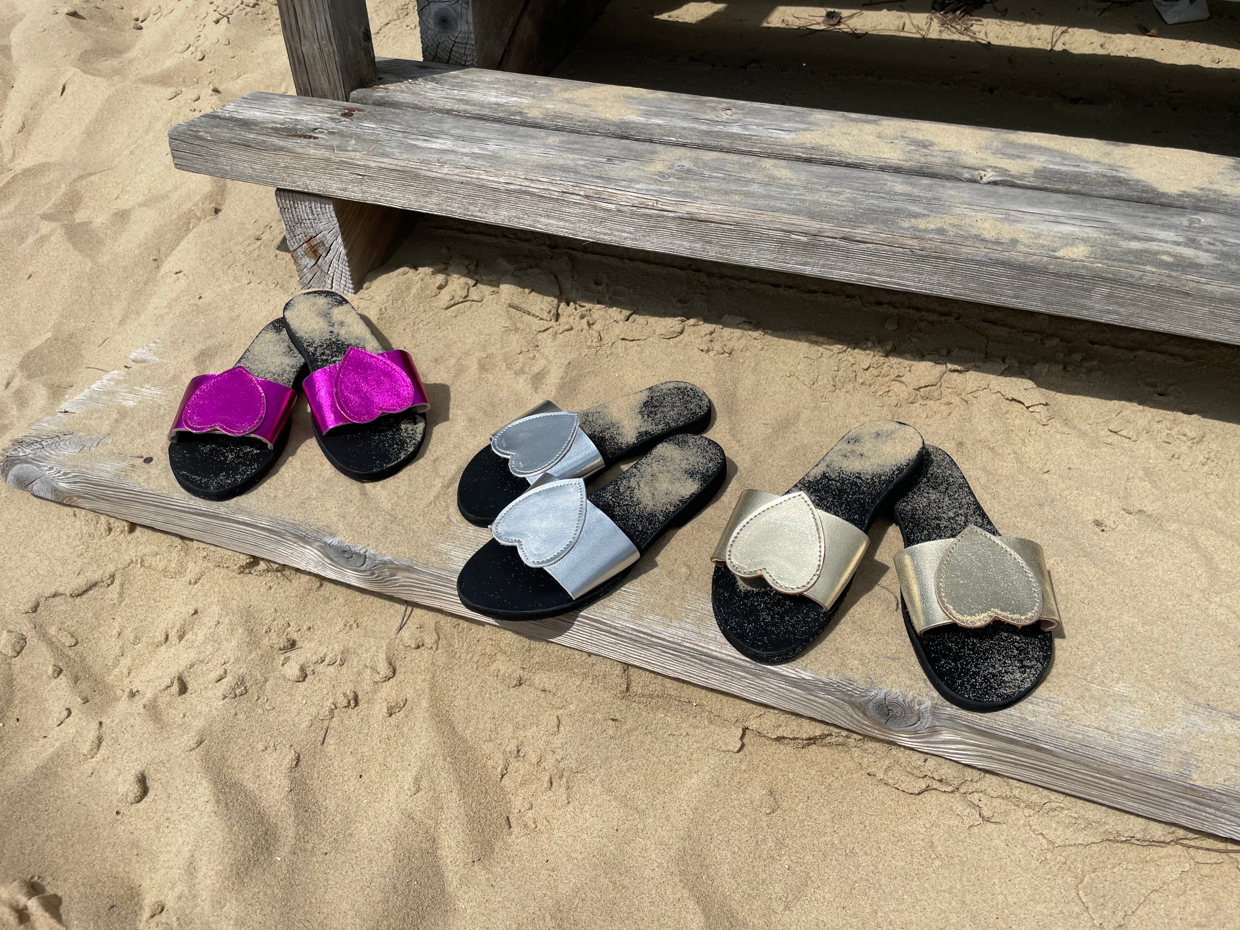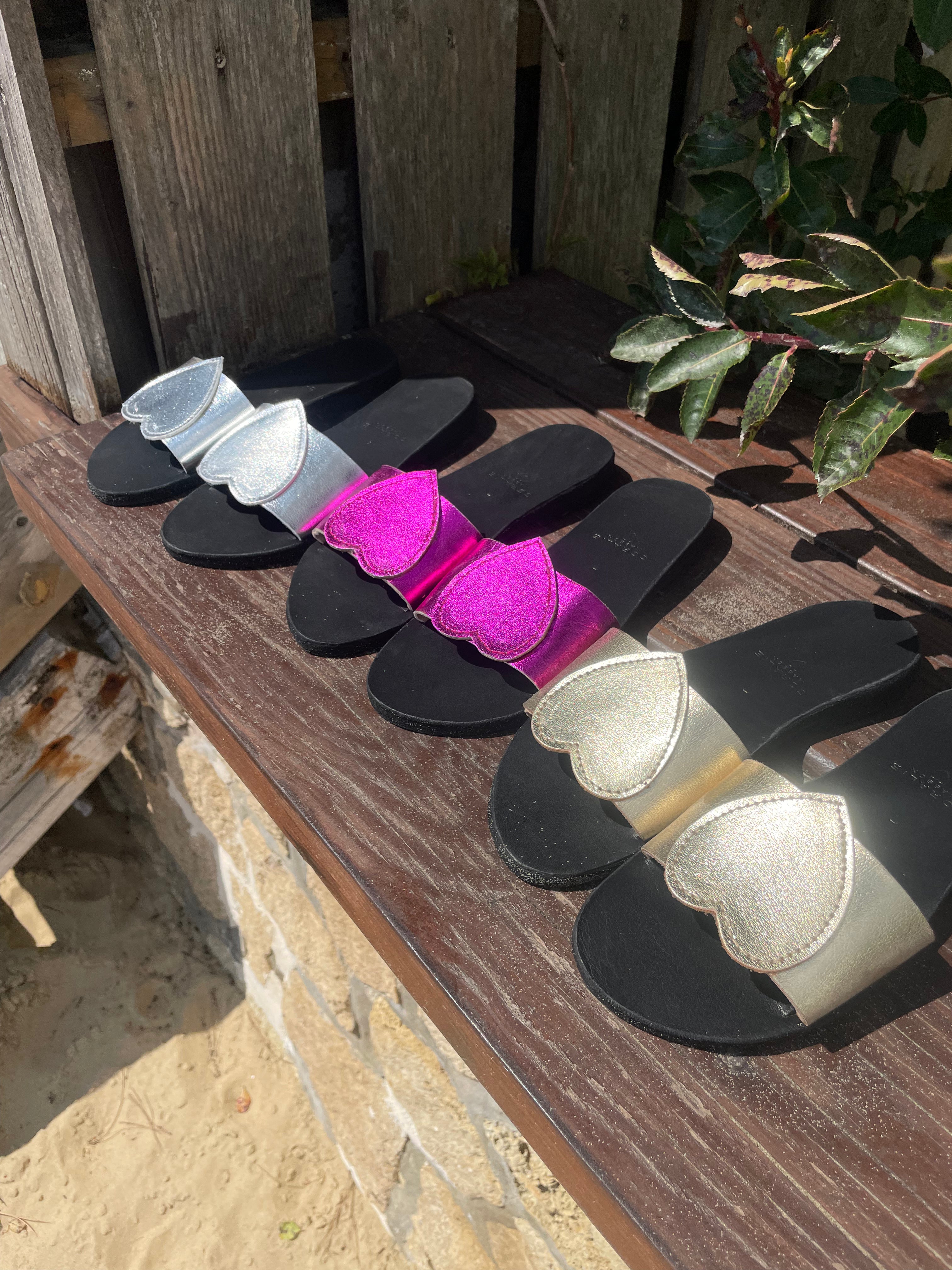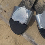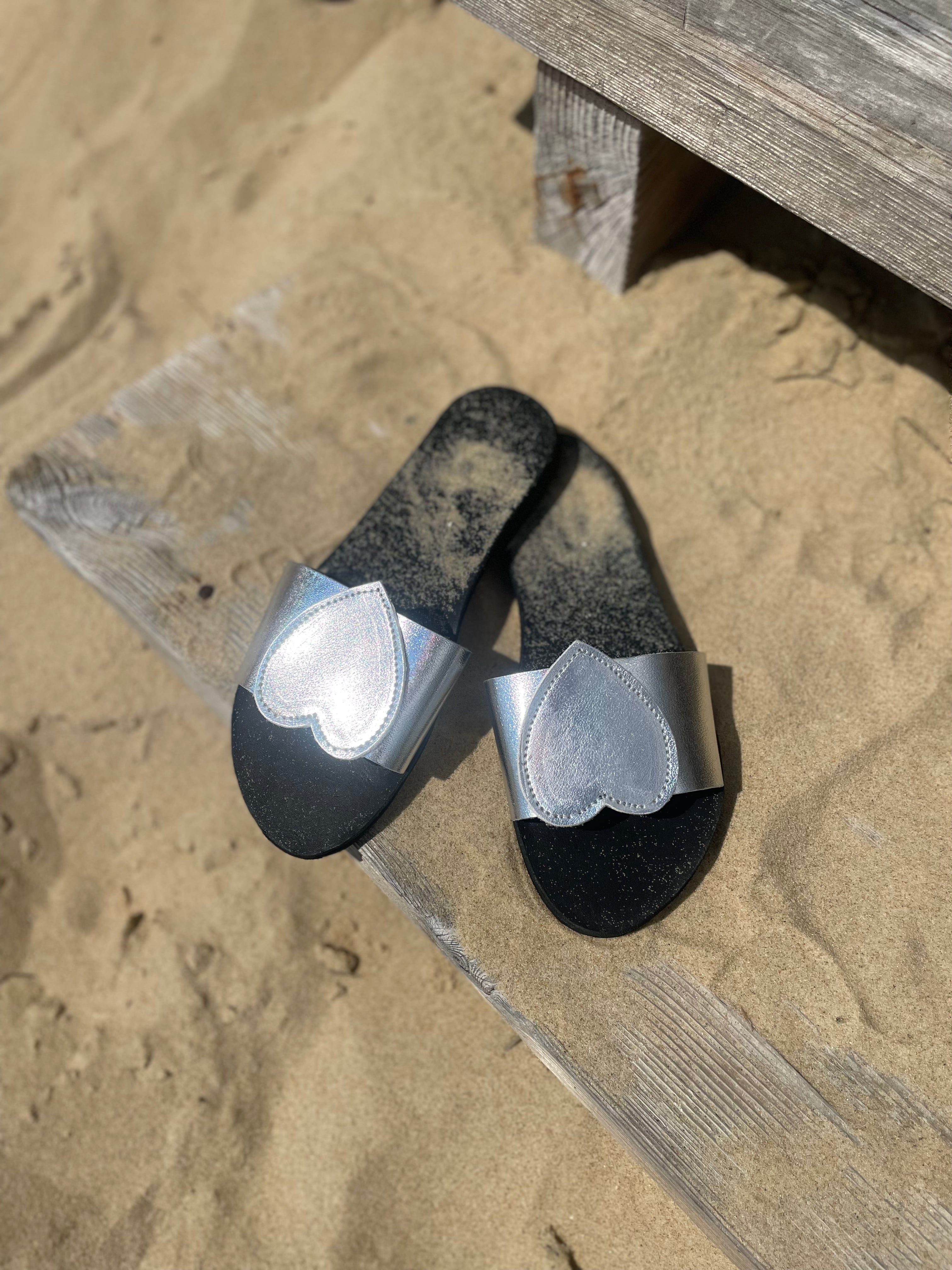 Craquez pour nos sandales plates Mathilda en cuir argent. Avec leur large bride coeur elles sont confortables car le pied est bien maintenu. Montées sur une semelle en gomme, elles vous accompagneront dans toutes vos aventures estivales ! Ces chaussures plates sont des véritables petits bijoux ♡