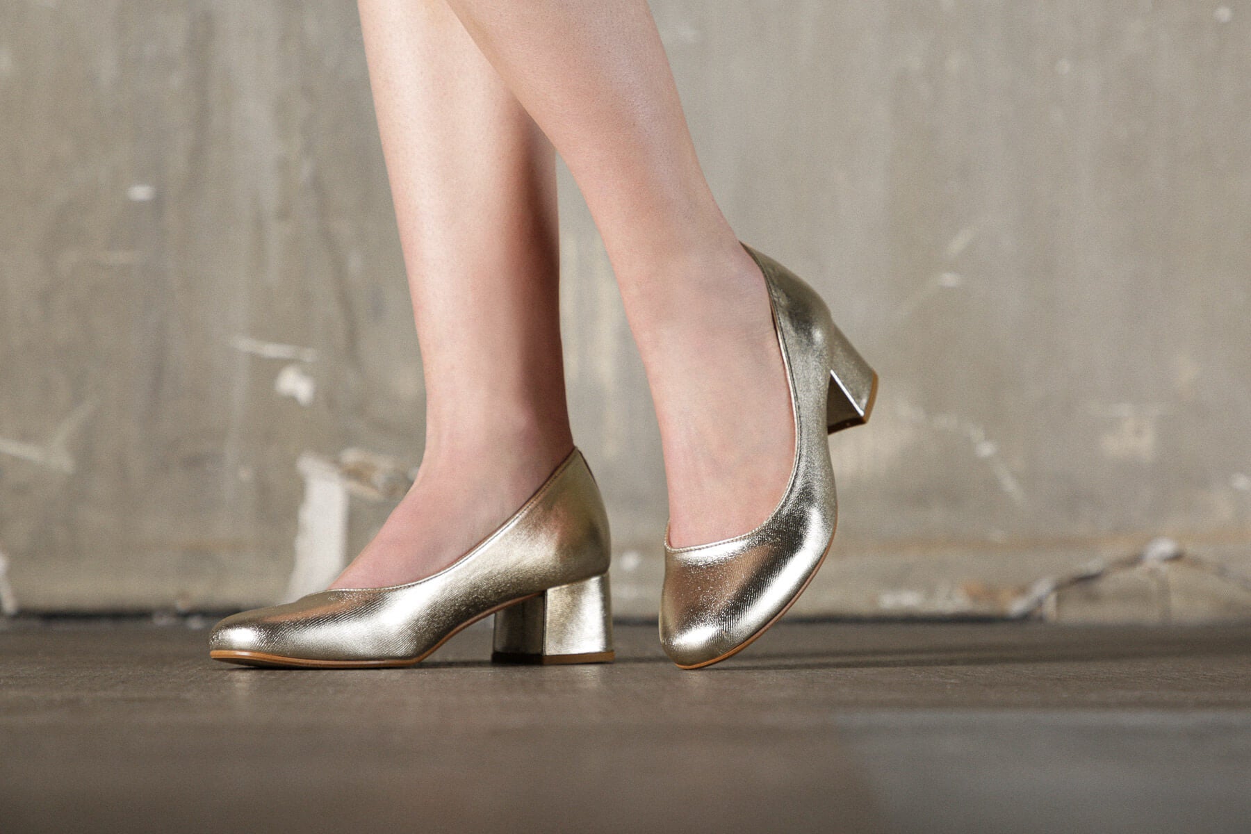 Détails escarpins Louise en cuir doré :