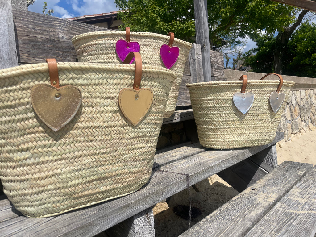 En apparence classique avec ses anses en cuir camel, notre panier Gilberte est en fait super cute: Pour lui donner la touche Coralie Masson, deux coeurs en cuir argenté viennent se poser sur le devant du panier. Quand l'originalité rencontre le classique on adore! Avec son grand format, il est idéal pour aller à la plage, au marché ou pour s'en servir de sac à main ♡