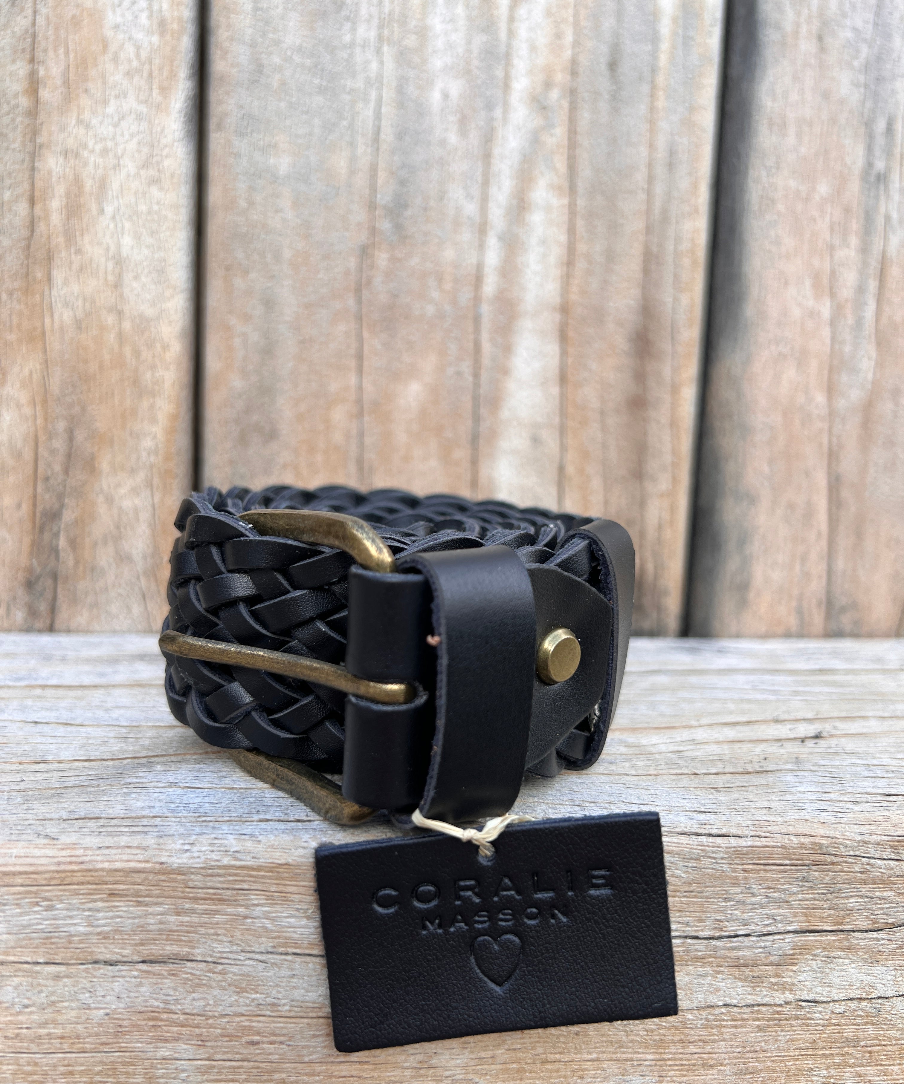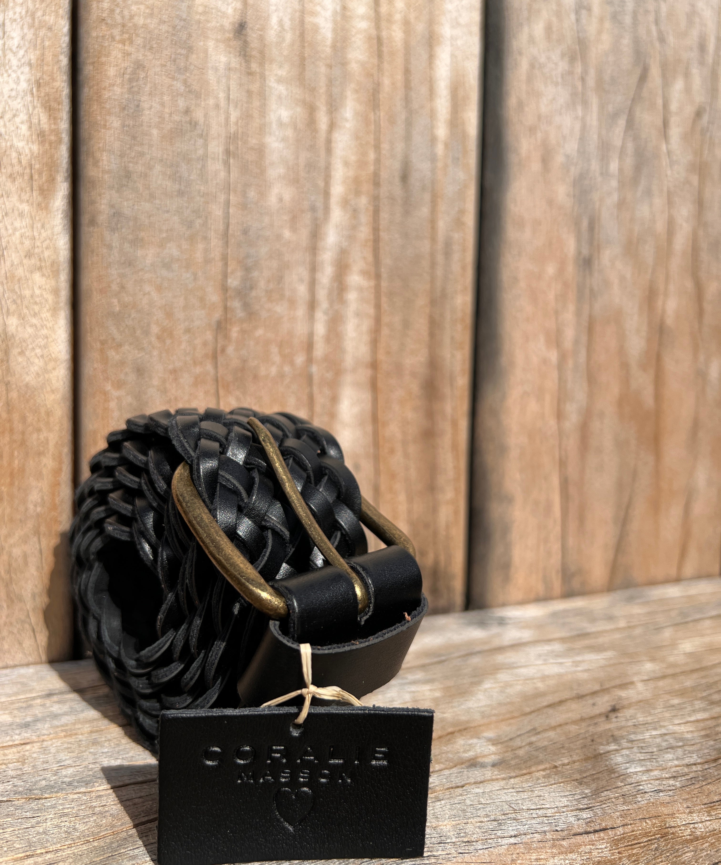 Ceinture Mila en cuir noir tressé