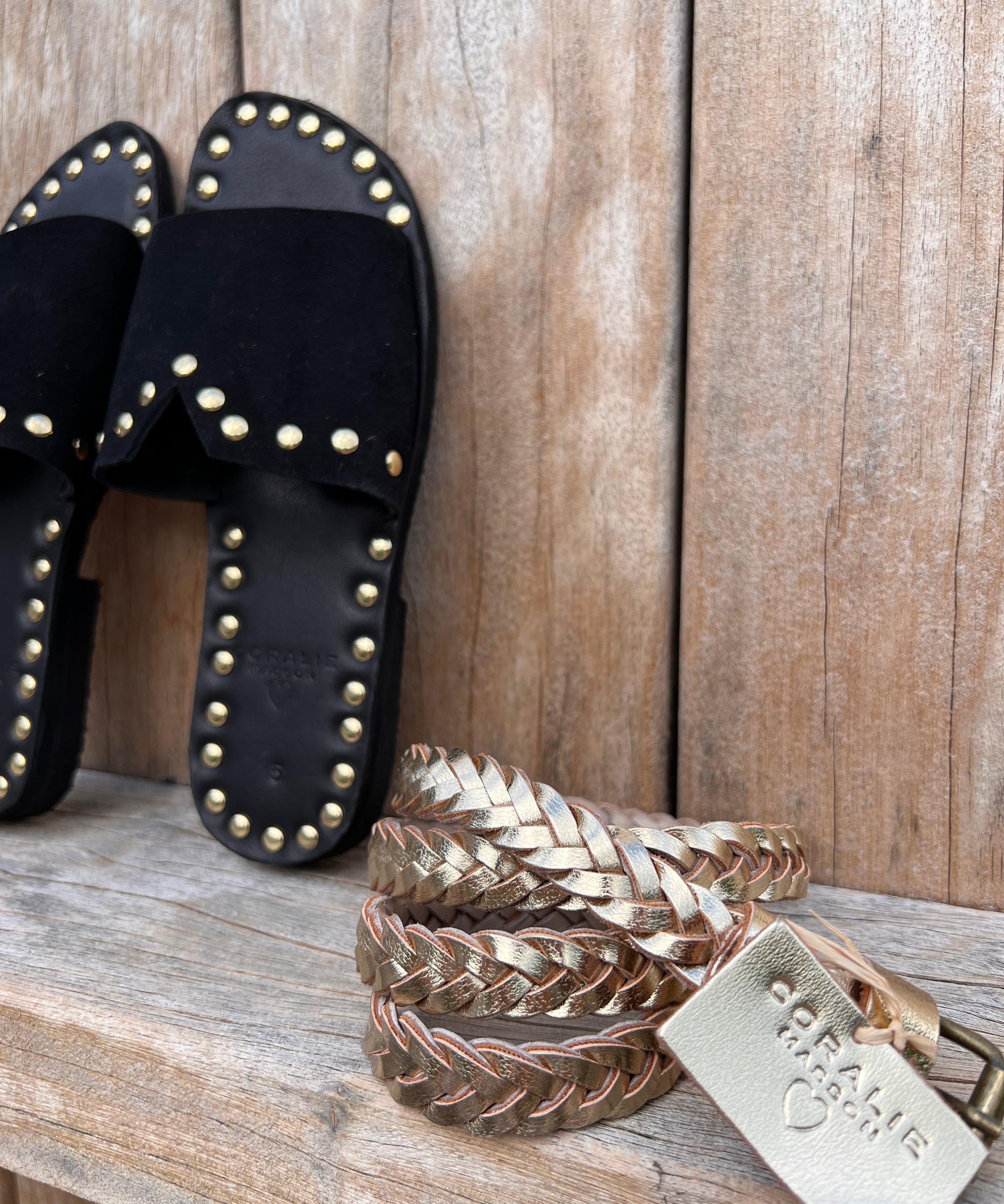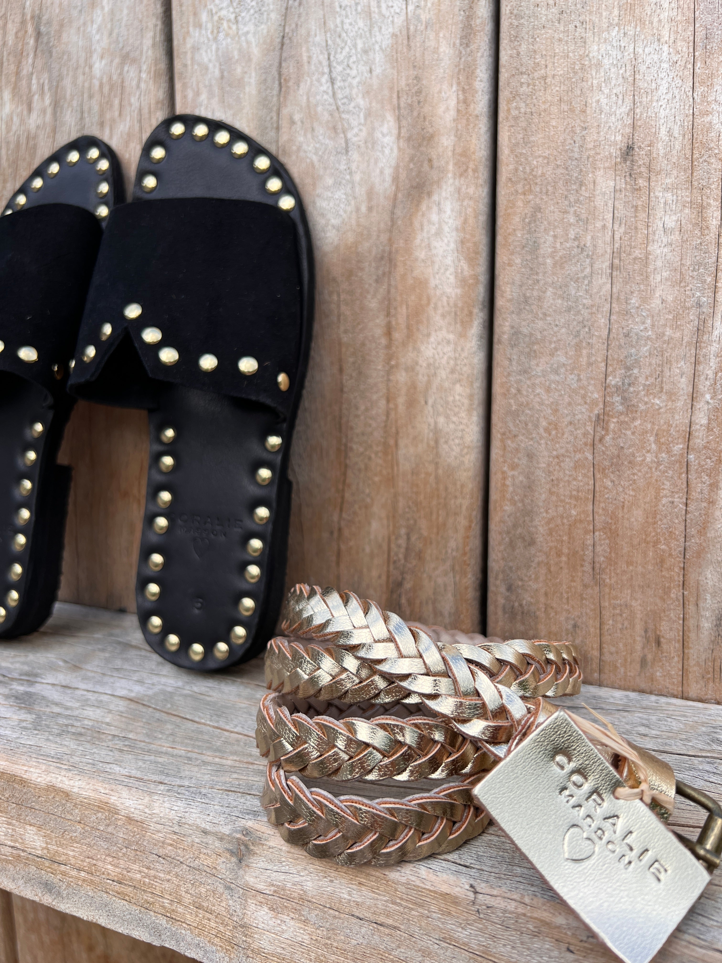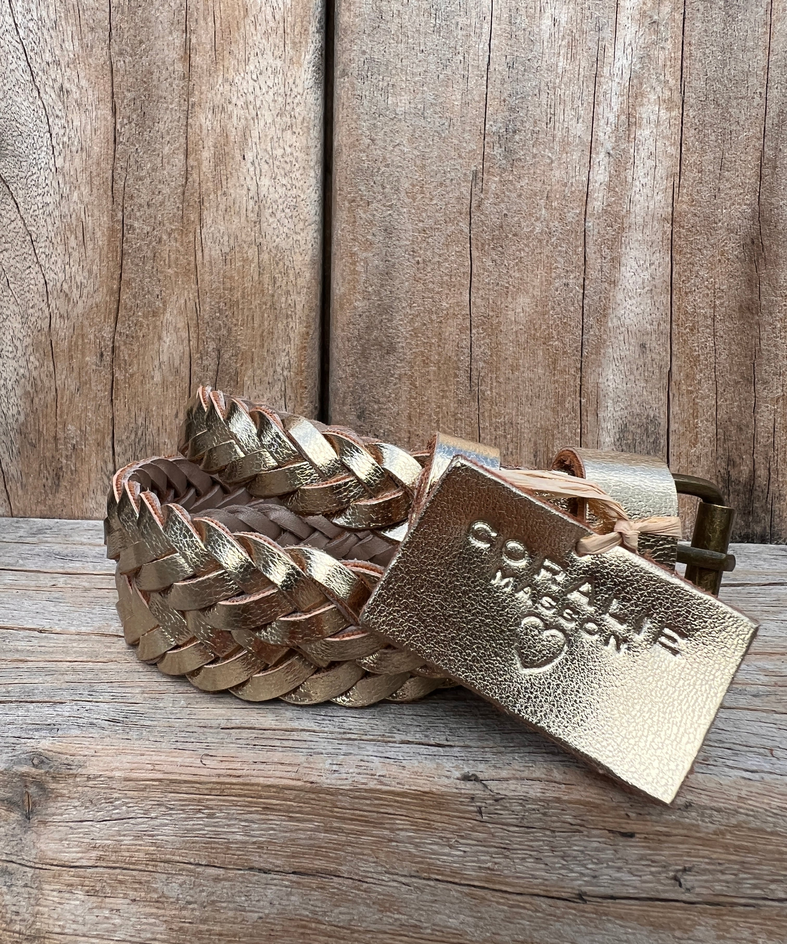 Ceinture Mila en cuir doré tressé