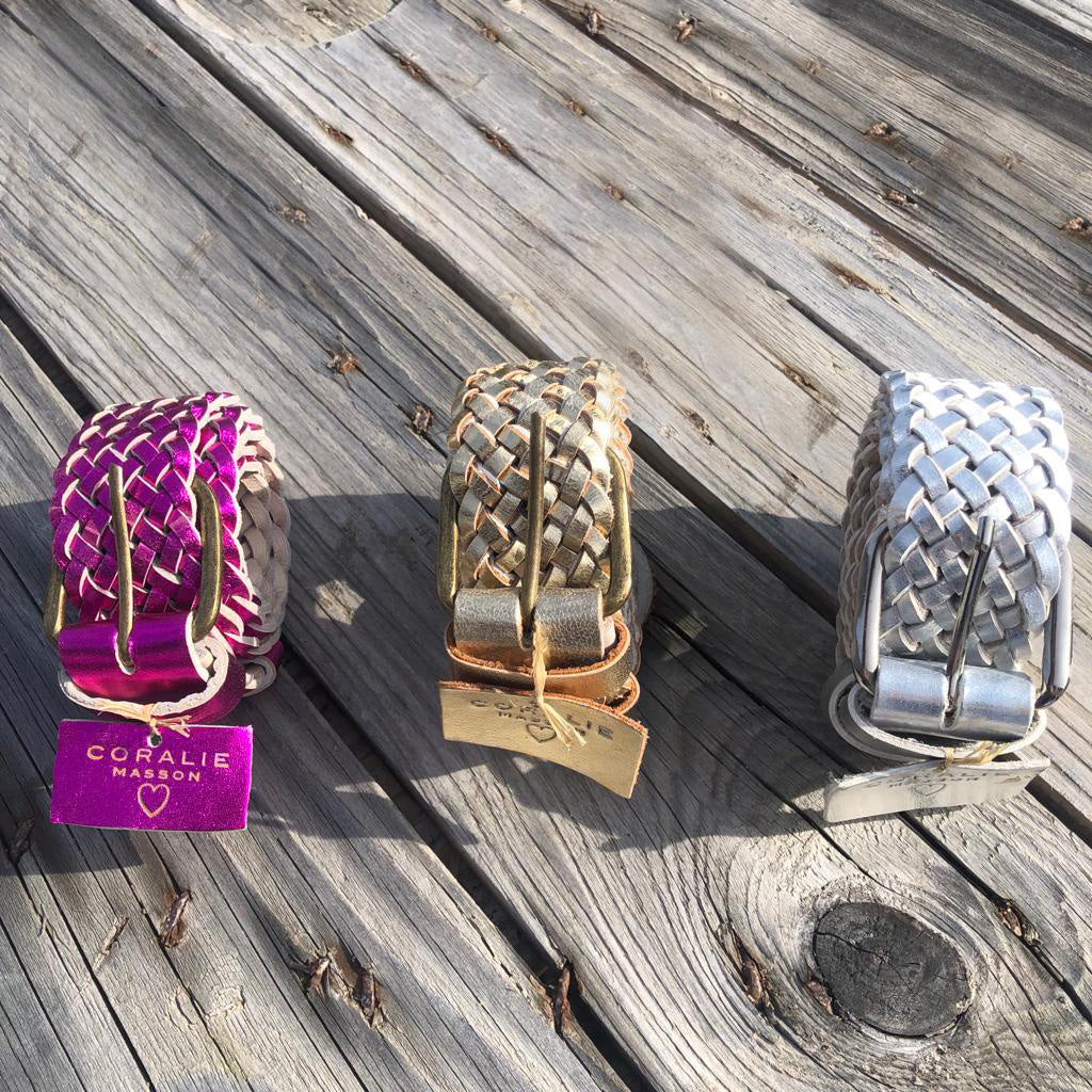 Ceinture Lou en cuir doré tressé