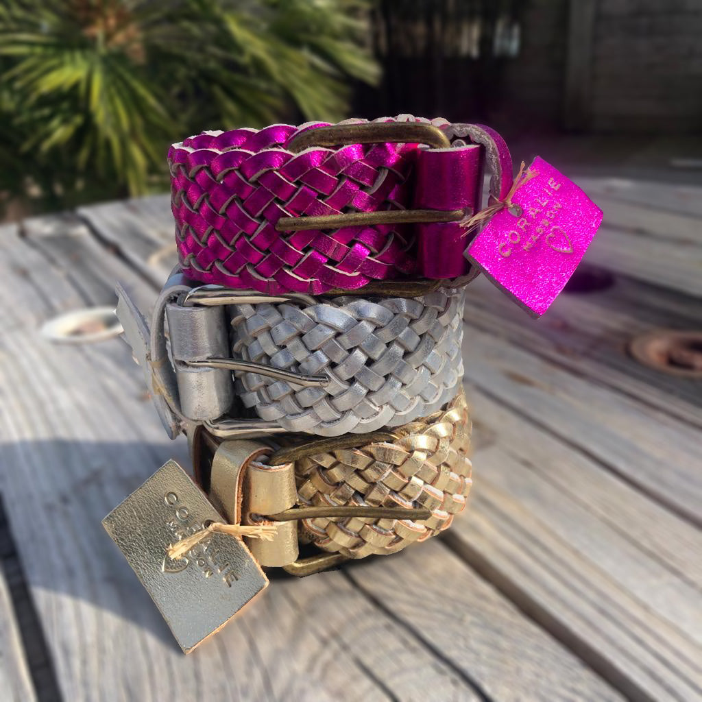 J’aime le cuir tressé en ce moment c’est la quatrième, doré,argenté,fushia et la noire manquait à ma garde robe😂