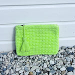 Format idéal pour glisser ses essentiels du quotidien : téléphone, porte-monnaie, lunettes, maquillage ou crème solaire. La matière étant souple et extensible, le sac s’adapte facilement à son contenu.