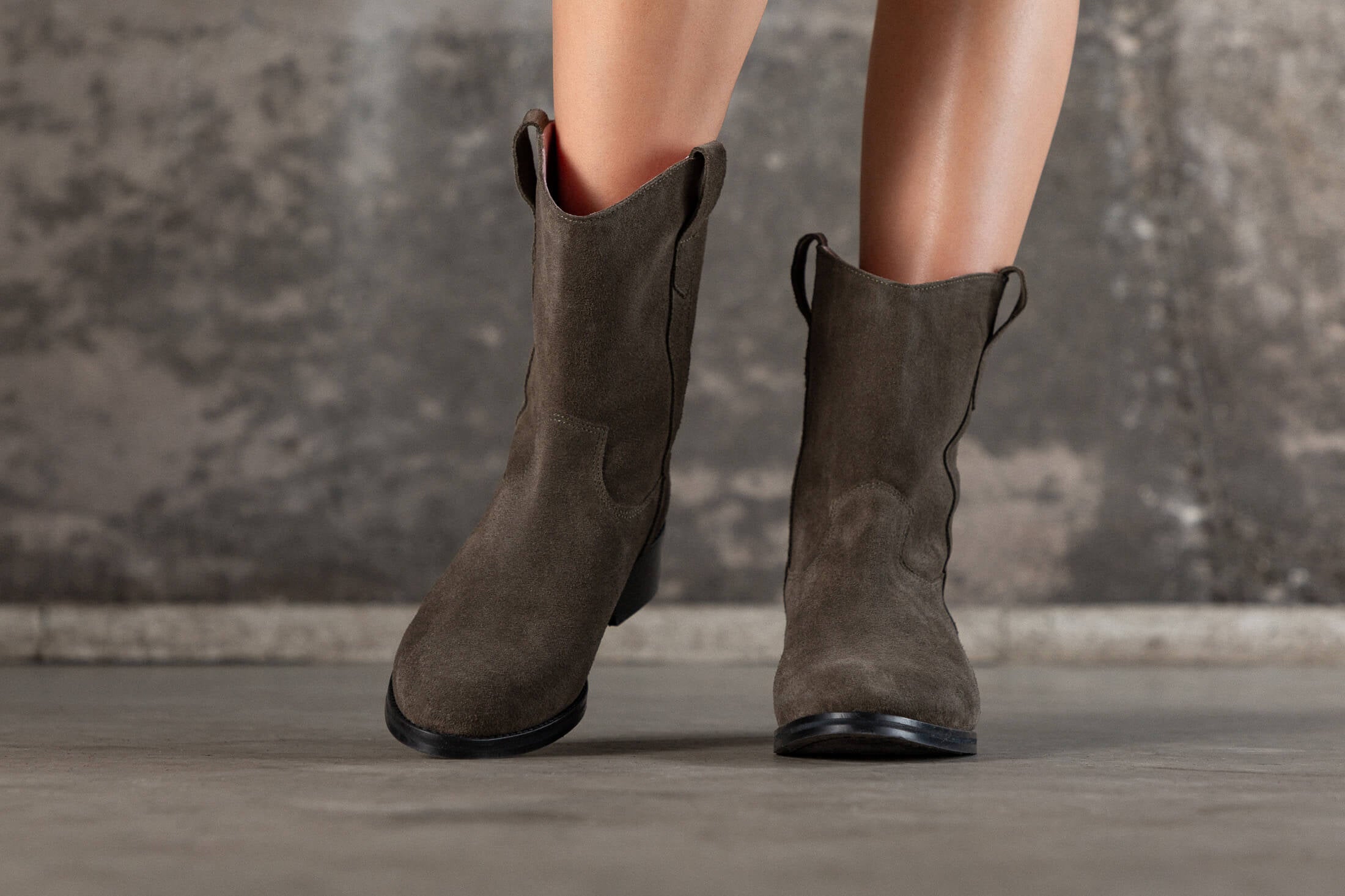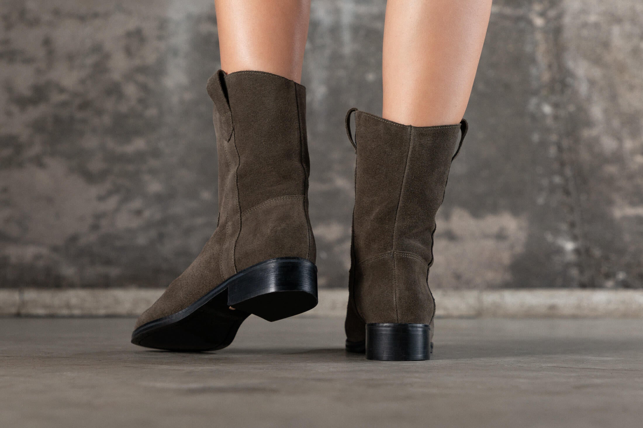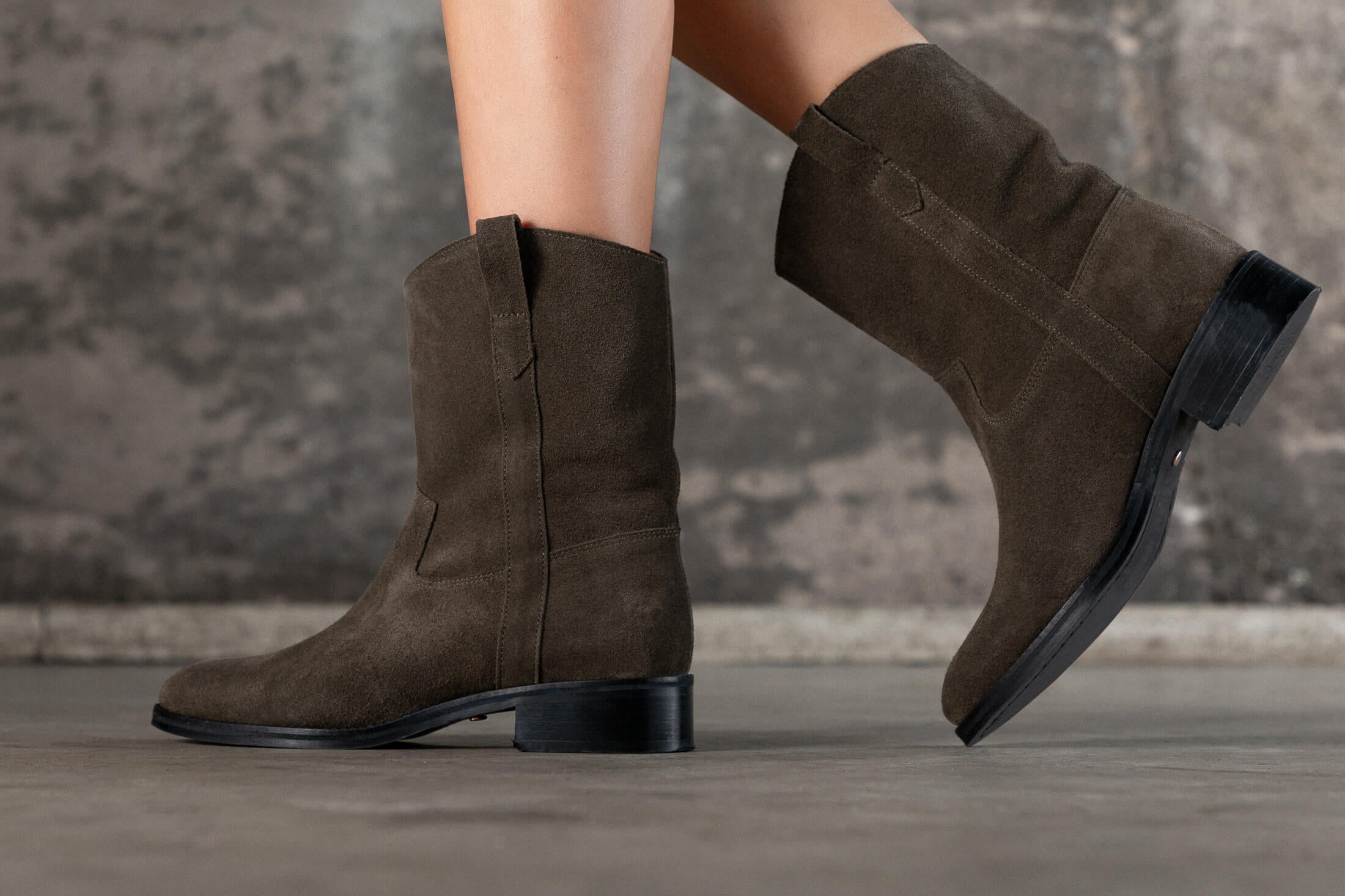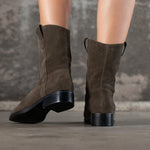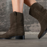 Bottines basses en croûte de cuir kaki