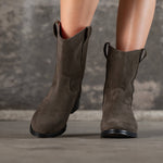 Naturelles, douces et résolument actuelles, les bottines Lucky en croûte de cuir kaki apportent une touche de couleur subtile à vos looks du quotidien. Leur silhouette basse, leur bout arrondi et leur petit talon de 3,5 cm en font un modèle ultra confortable, à enfiler sans prise de tête. Une bottine à la fois décontractée et chic, qui coche toutes les cases de la paire parfaite pour la mi-saison et l’hiver.