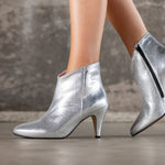 Les low boots Louisa se déclinent ici dans une version éclatante en cuir argenté écaillé. Leur tige biseautée, signature du modèle, affine la cheville et allonge visuellement la jambe, pour une silhouette élégante et féminine. Le bout arrondi adoucit la ligne, tandis que le talon de 7 cm apporte juste ce qu’il faut de hauteur, sans compromis sur le confort. Un modèle chic, moderne et facile à adopter au quotidien comme en soirée.