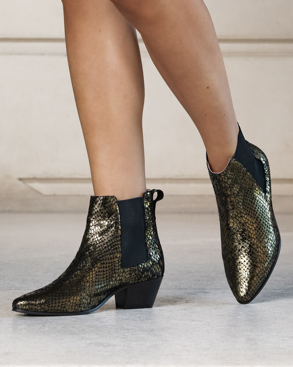 Bottines Bogota en cuir serpent mordoré