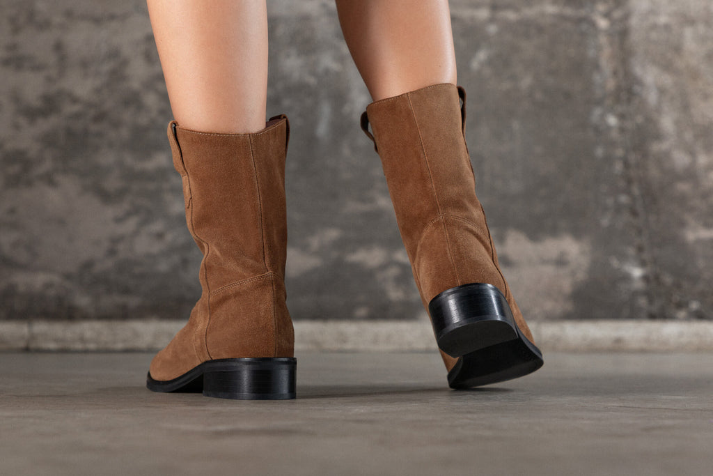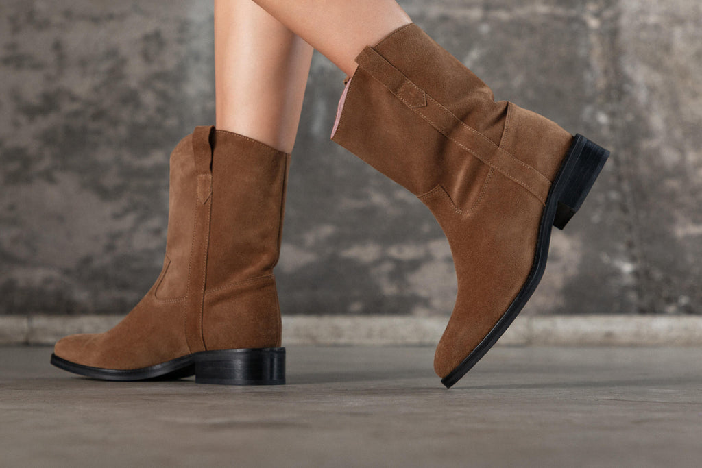 Bottines Lucky – Croûte de cuir camel