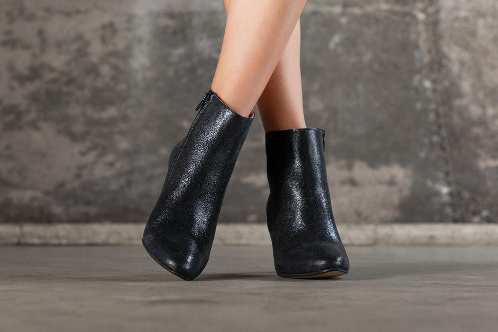 Bottines Boby – Croûte de cuir noir irisé & ligne féminine