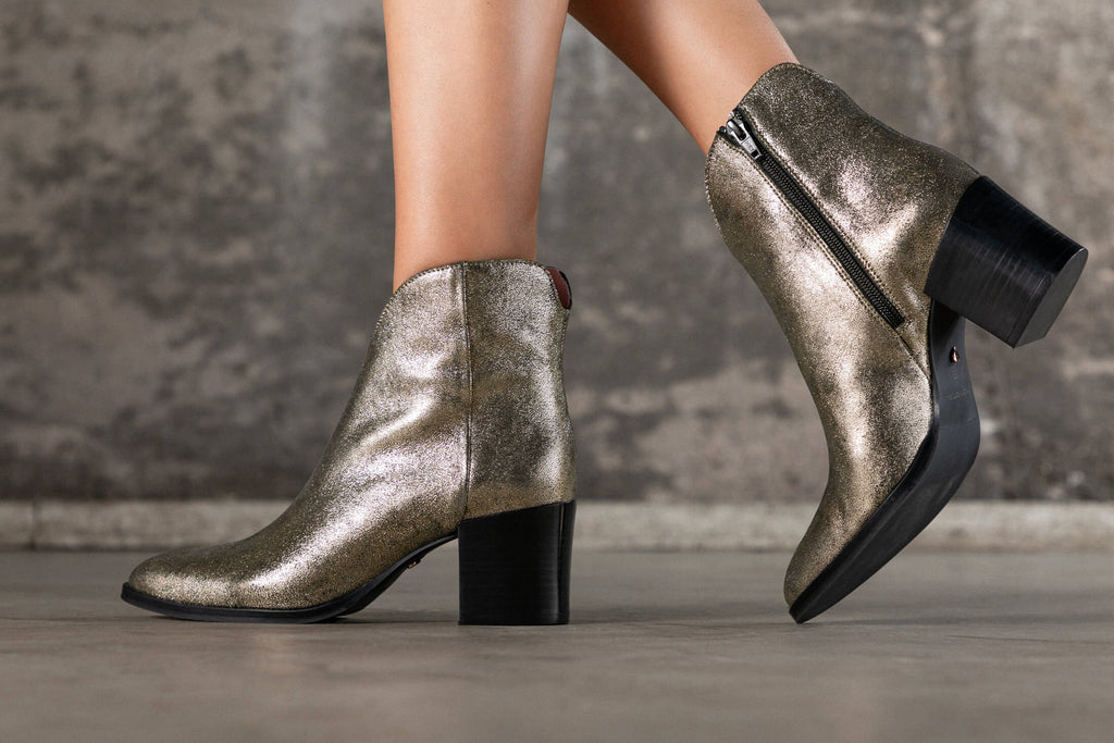 Les Nevada se déclinent dans une version gold ultra désirable, toujours avec leur silhouette structurée et leur tige subtilement remontée. Le cuir doré capte la lumière sans trop en faire, tandis que le talon bottier noir contraste pour encore plus de caractère.
